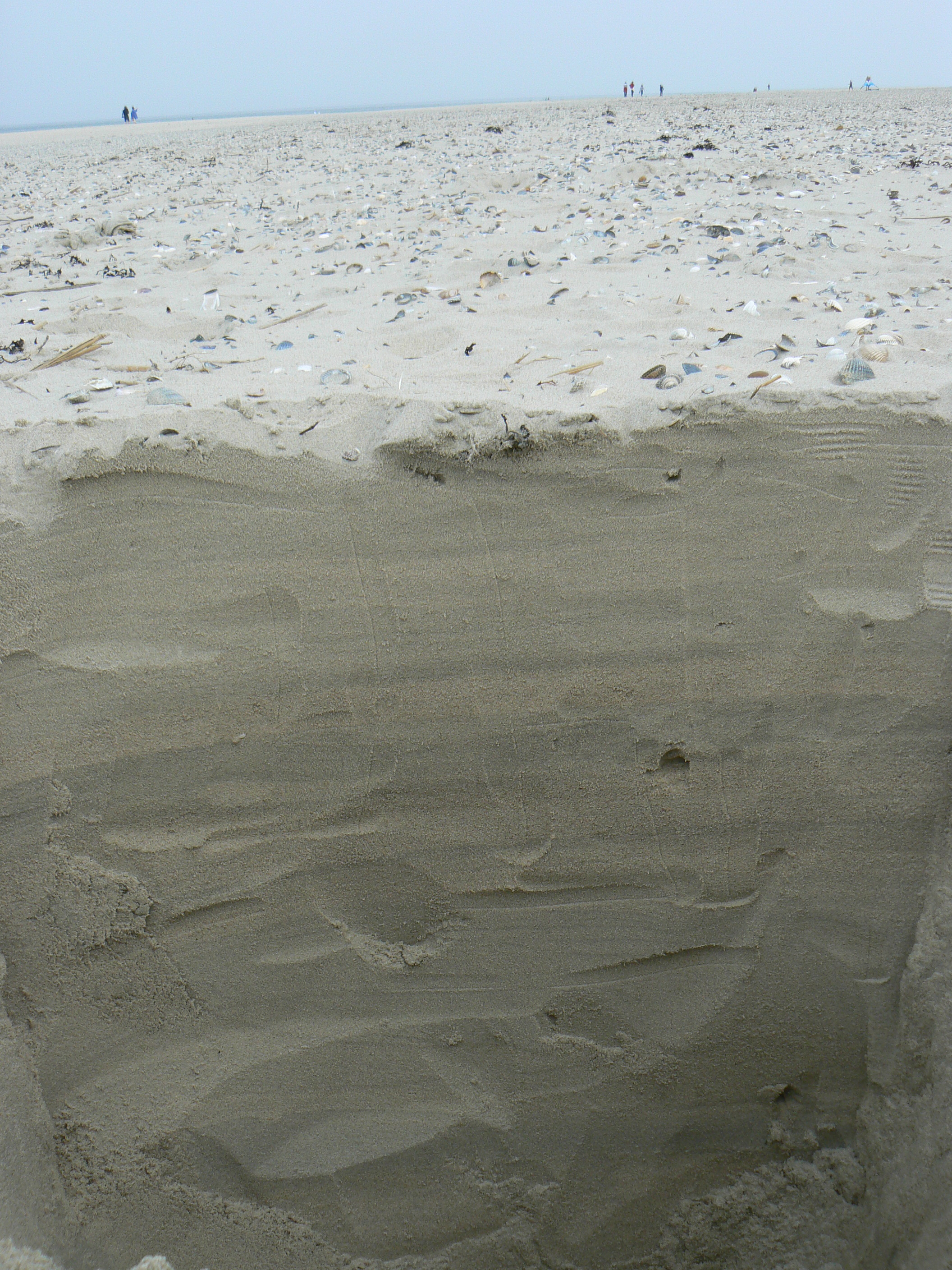 Profil in Strandablagerungen (Profilhöhe circa 0,5 m) auf der Insel Baltrum (Niedersachsen; Fotos: GEHRT, E., 2008). |
