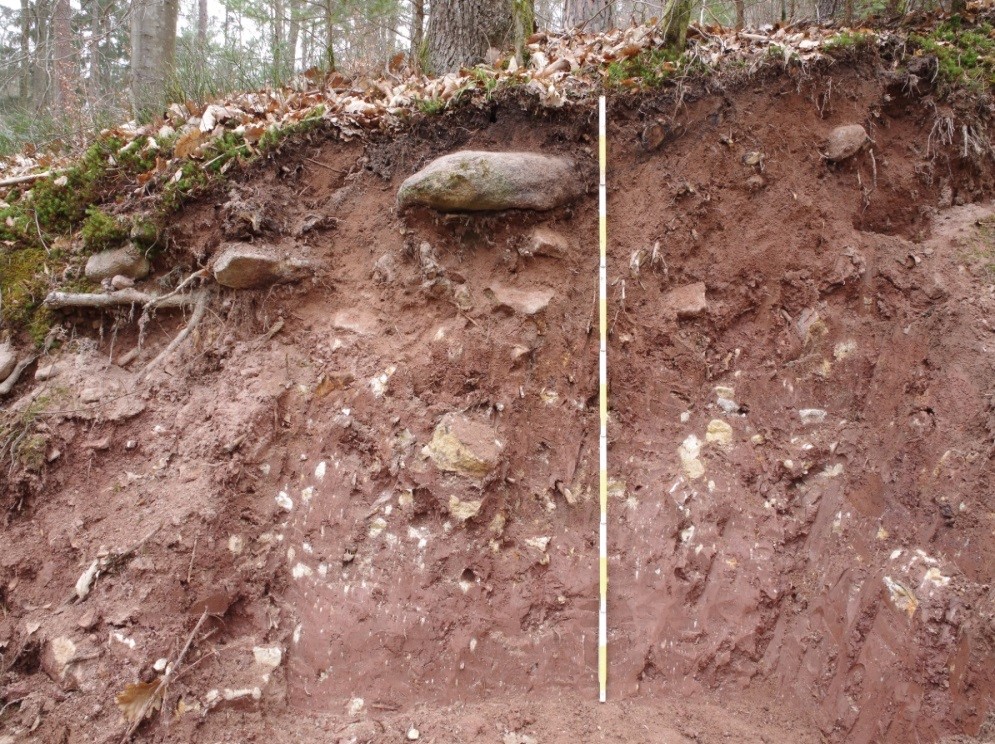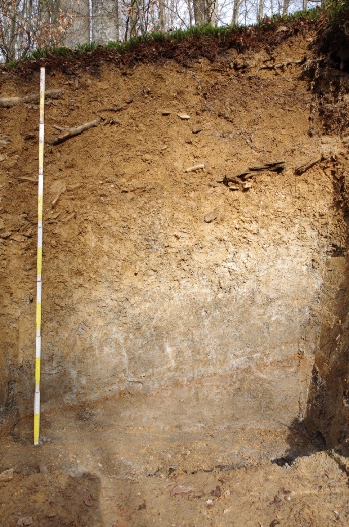 Mehrschichtige Fließerde (im Keuper-Bergland des Rammerts, Lkr. Tübingen; Foto: LGRB Baden-Württemberg, 2017) |